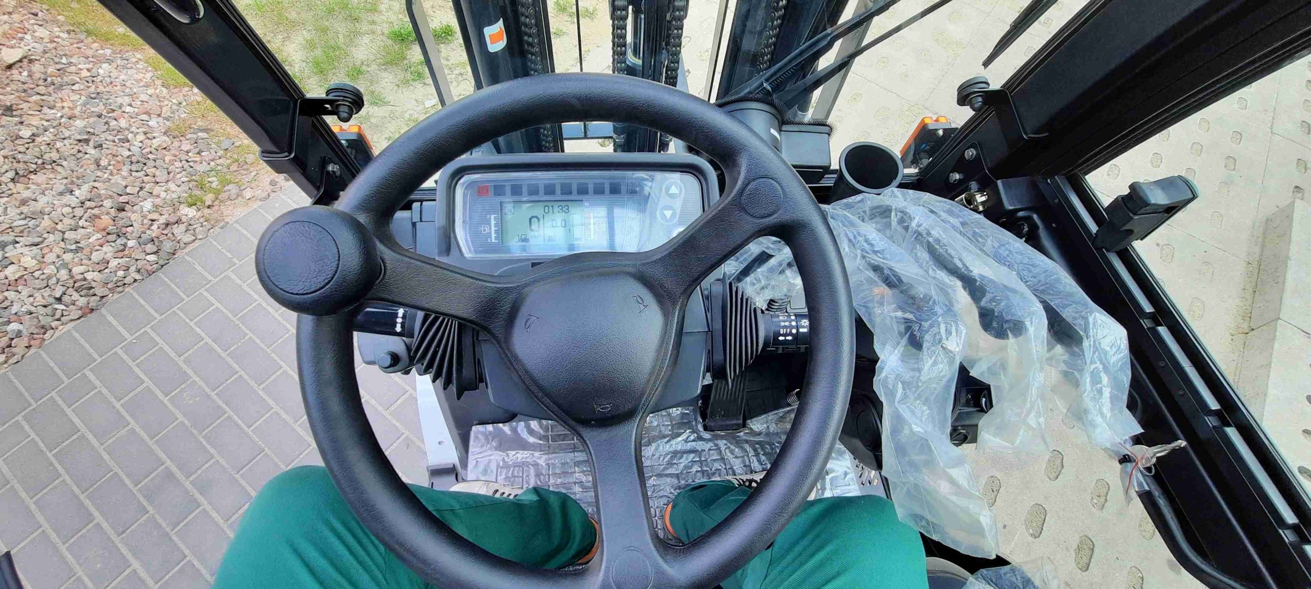 - Mechaniczne oddzielne dźwignie sterujące funkcjami pochylenia i podnoszenia masztu oraz dodatkowa dźwignia sterująca dodatkowym oprzyrządowaniem np. przesuwem bocznym wideł.